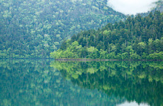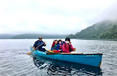透明度19.5mを誇る然別湖に漕ぎ出す。美しい森と湖の風景。