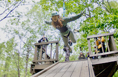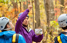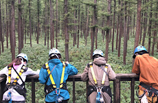ガイドの解説を楽しみなながら林内を散策します。散策中に4本のワイヤーを使った空中移動も含まれます。