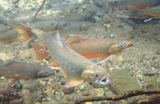 固有亜種ミヤベイワナがうまれた川をウェーダー(胴長)を履いて歩きましょう。