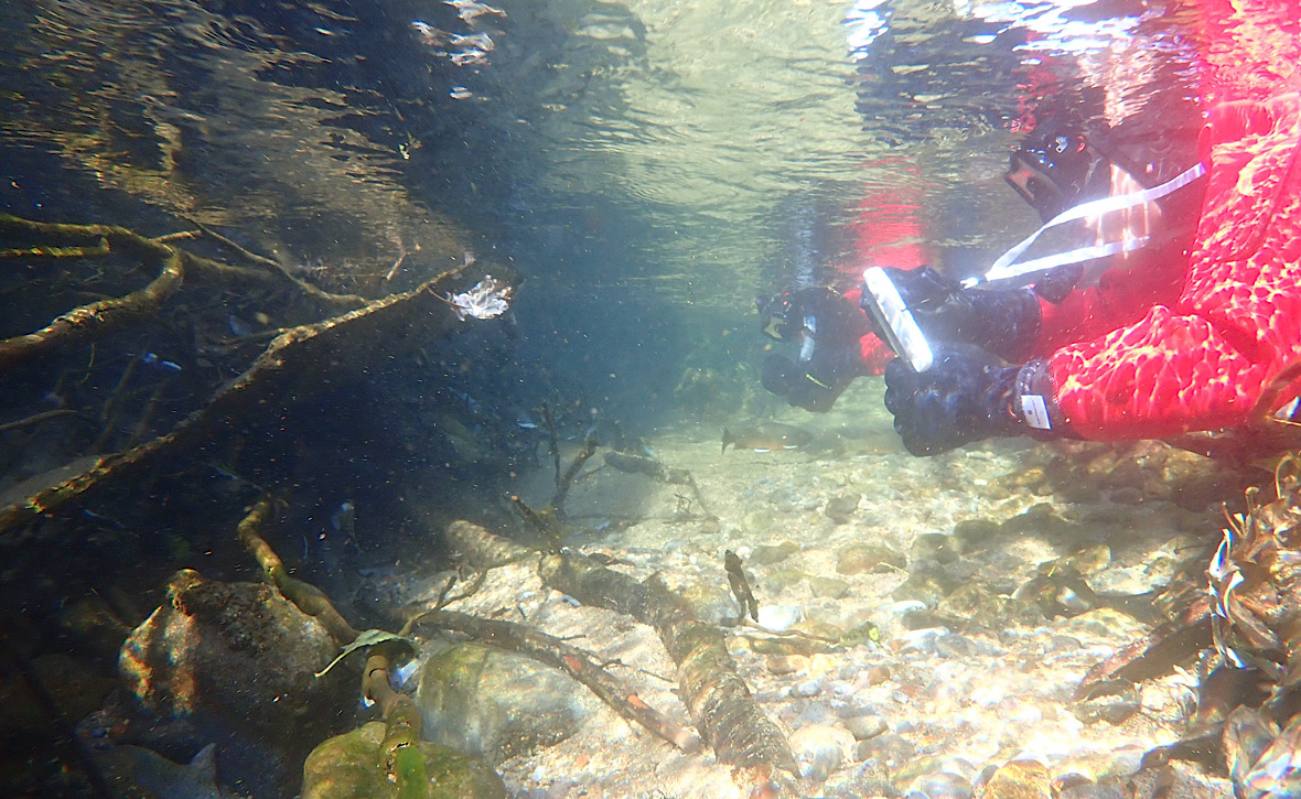 We will put on swimming goggles and snorkel,but the stream is shallow so we don’t need to dive.