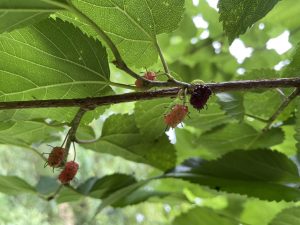 Written by 然別湖のほとりから(自然情報) 8月1日 しんご 「ヤマグワ 食べてみた」 2022.08.03 Post Share Hatena Pocket RSS feedly Pin it 夏らしい暑い日が続き、太陽燦々と浴びた樹々の枝先には沢山の実がついています。 エア・トリップ会場のヤマグワも実がいっぱい成っていて、熟すと甘味があるそうです。 黒い熟していそうな実を一つ食べてみると、 「う〜ん、酸っぱい!」まだちょっと早かったのかな。