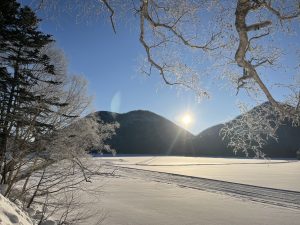 Written by 然別湖スタッフ日記 1月10日 コバ 2023.01.11 Post Share Hatena Pocket RSS feedly Pin it 然別湖の日の出は、7時50分前後になります。 朝日に照らされる、ダケカンバの凍った枝がきらきらしていて綺麗です。