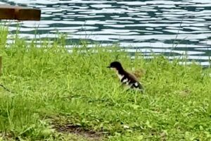 朝一にカヤック出発準備をしていたら、なんと樹上からカワアイサの巣立ち?