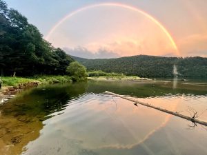 Written by 然別湖のほとりから(自然情報) 光の輪 まっつ 2023.08.19 Post Share Hatena Pocket RSS feedly Pin it 夏のキャンプで東広島の子供たちがやって来ました。 今年も2泊3日のキャンプ。 台風一過で気温が乱高下。最終的には蒸し暑かったです。 そんな夕暮れ、湖畔に大きな虹が出ました。 キレイだったな~!