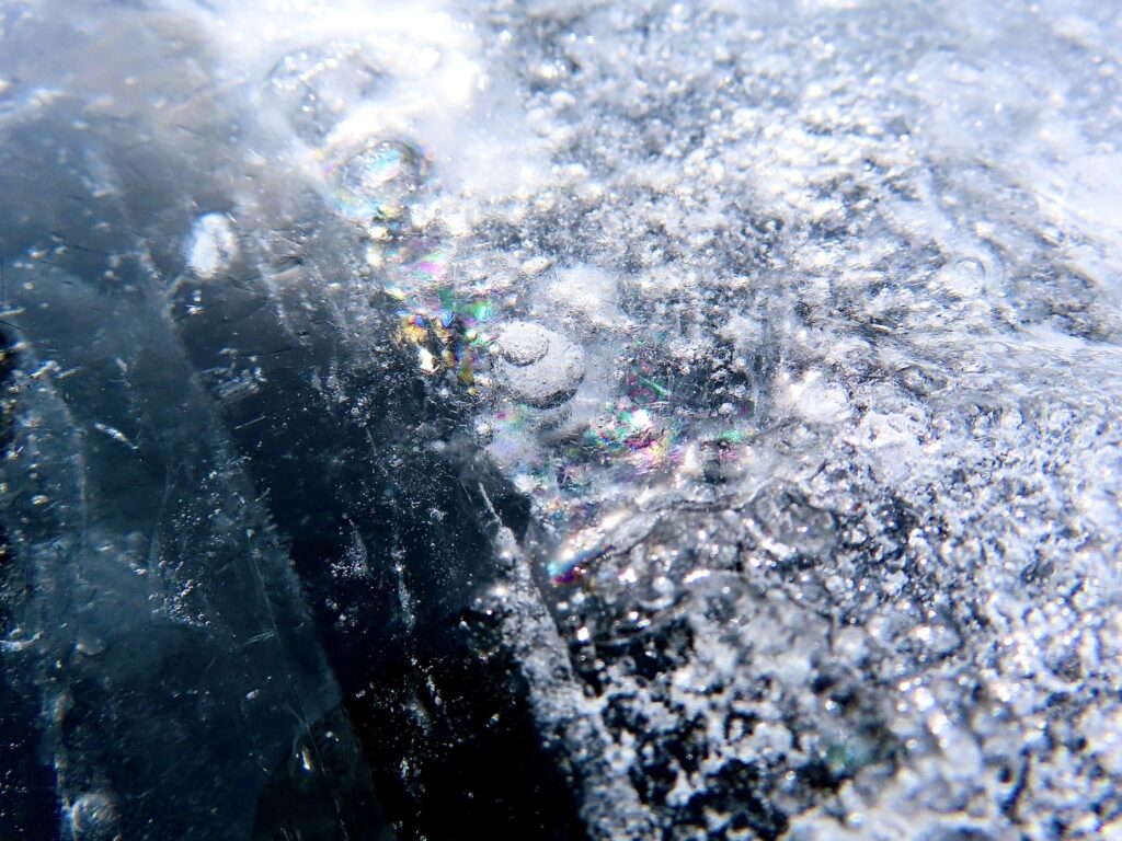 Written by 然別湖のほとりから(自然情報) 2月28日 こば 2024.02.28 Post Share Hatena Pocket RSS feedly Pin it 湖の上には面白い自然現象がいっぱいあります。 湖底からあがってきたガスが氷に閉じめられています。虹色の光も入っててとても綺麗。