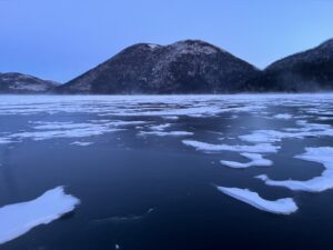 Written by 然別湖のほとりから(自然情報) 1月10日 はやした 2025.01.12 Post Share Hatena Pocket RSS feedly Pin it 強風の1日でした。 先日湖上に降った雪がどこかに吹き飛んで行ってしまいました。 綺麗な氷が現れてスケートリンクのようです。 日々表情の変わる然別湖です。