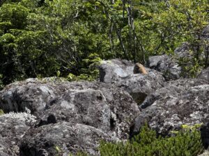 散策の途中でナキウサギがピッピッ!甲高く鳴き、こちらを威嚇しています。