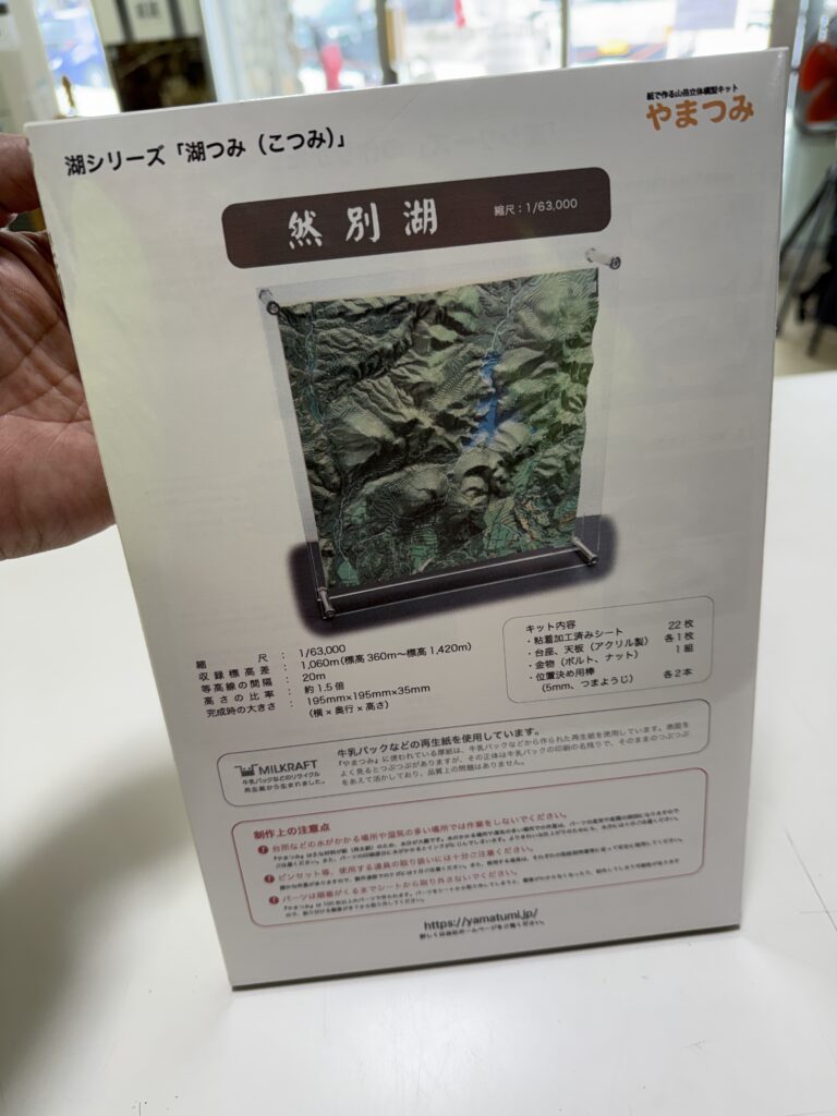 Written by お知らせ 積んどく?? 2026.01.24 Post Share Hatena Pocket RSS feedly Pin it 紙で作る山岳立体模型キット やまつみ工房様により然別湖火山群を切り取った素敵な模型を 製作して頂きました。 最大の特徴は、山の上から湖の底まで 一貫した等高線で繋がっている事です。 『湖つみ』シリーズのひとつとして販売開始です。 1つ\6,000 然別湖が大好きな皆様! 手元にひとつ『然別湖』。 ご購入お待ちしています!! 然別湖ネイチャーセンターにて販売していますが、 近日中に当社ネットショップにて販売開始予定です。