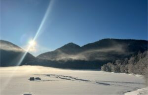 Written by 然別湖スタッフ日記 1月9日 しょーじー 2024.01.09 Post Share Hatena Pocket RSS feedly Pin it この冬は暖かい冬ですが、さすがに然別湖は少しだけですが寒い日もあり、 それでもマイナス20℃には中々、下がりません。 この日は久しぶりに寒く水蒸気が中途半端な高さで滞留して綺麗でした。