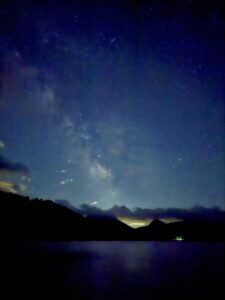 湖畔からの星空。手持ちのスマートフォンでしたが、天の川まで撮影できました! 晴れていれば凄い空が楽しめるのは、月が明るくなるまでのあと数日です!
