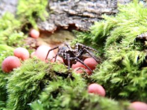 Written by 然別湖スタッフ日記 8月29日 こば 2025.08.29 Post Share Hatena Pocket RSS feedly Pin it 写真を撮っていると、 マメホコリを守るかのように、クモが走ってきました。目がキラキラしてて可愛い。