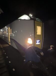 今度は行き違いの対向車両が鹿と接触して安全確認をしているとの車内アナウンス。
