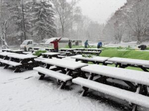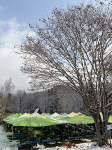 Written by 然別湖スタッフ日記 10月29日 はやし 2025.10.29 Post Share Hatena Pocket RSS feedly Pin it 修学旅行のアウトドアランチで朝会場に到着すると会場全体が雪に覆われていました。 自宅周辺は降っていなかったのに、こちらは別世界です。 スタッフ全員で設営にとりかかりなんとかお迎えできました。 寒くて大阪の高校生には辛いかなと思っていましたが、みんな元気いっぱいで雪を楽しんでいました。 いつか真冬の綺麗な雪も体験いただきたいです。