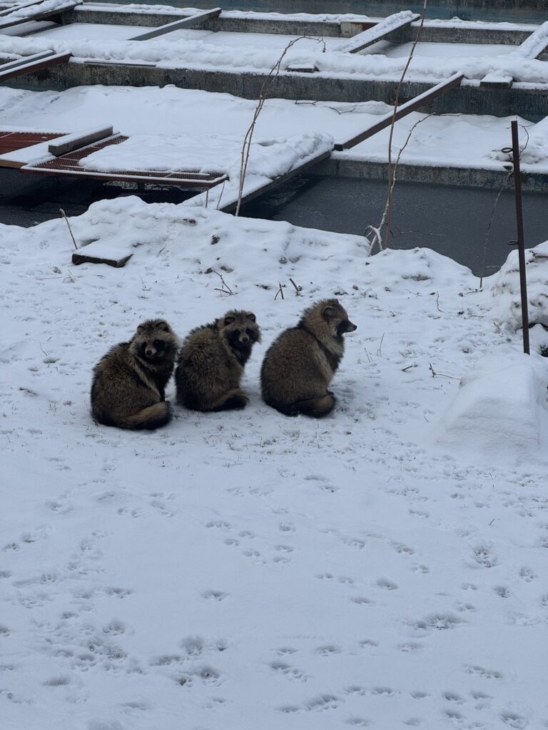 Written by 然別湖スタッフ日記 12月26日 たかつき 2025.12.26 Post Share Hatena Pocket RSS feedly Pin it 弊社が管理している孵化場に毎年冬になると色んな動物がやってきます。 今年は3匹のエゾタヌキが 住み着いてます。 このまま上手く冬を越せるかな。